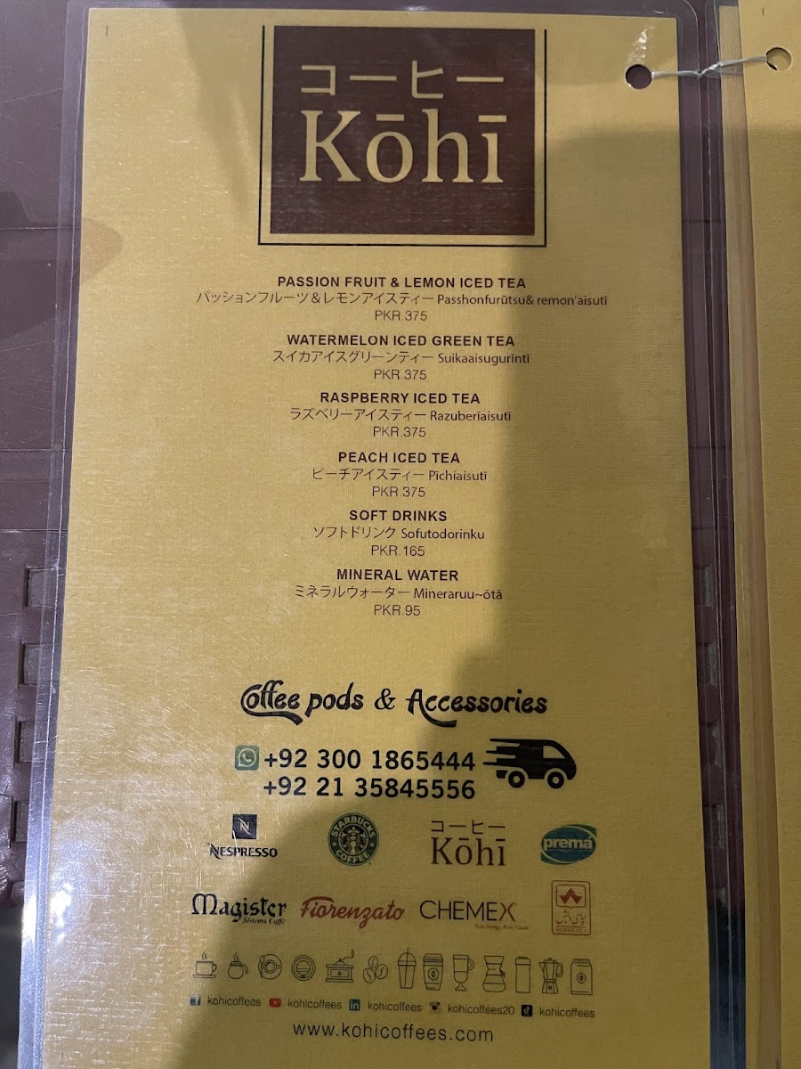 Welcome to Kohi Coffees, a delightful coffee haven located in the vibrant DHA Phase 5 of Karachi. As you step inside, the aroma of expertly brewed coffee greets you, inviting you to explore a diverse menu, from rich cappuccinos to indulgent iced lattes.